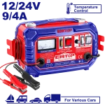 Ce chargeur est conçu pour une tension d’entrée de 220-240V, avec une fréquence de 50/60 Hz. Il offre une tension de charge de 12V/24V et un courant nominal de 9A pour 12V et 4A pour 24V. Le courant de suralimentation atteint jusqu’à 12A. Il est adapté aux batteries d’une capacité comprise entre 28 et 180 Ah. De plus, il dispose d’une classe d’isolation de type H pour une meilleure sécurité et performance. Son poids est de 5,6 kg, et il est livré dans une boîte en carton pour un transport sécurisé.