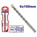 Foret 6×100 avec Pointe TCT de haute qualité – Tige en acier allié chromé, Pour béton et granit résistants, Emballage double blister