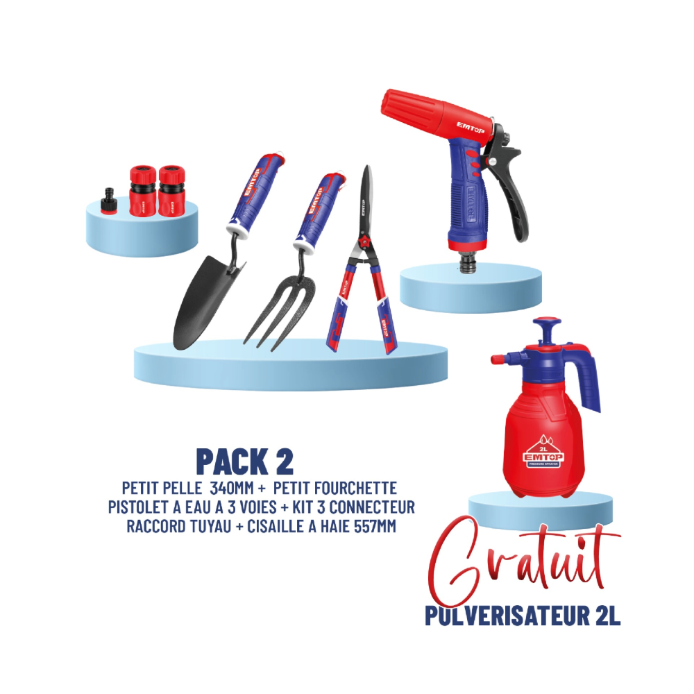 Prenez soin de vos espaces verts avec ce pack EMTOP complet et pratique. Que vous soyez amateur ou passionné de jardinage, ces outils vous garantissent efficacité, confort et robustesse à chaque utilisation.